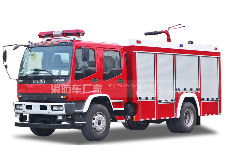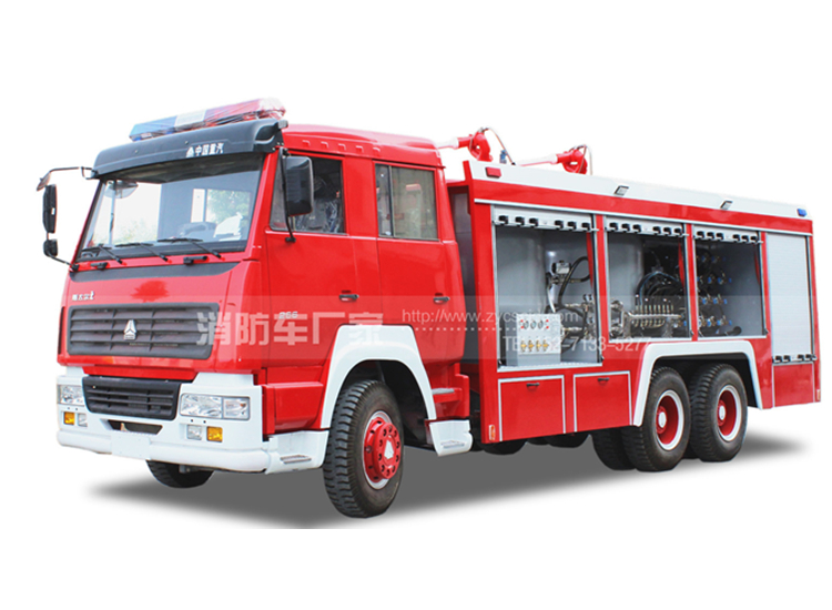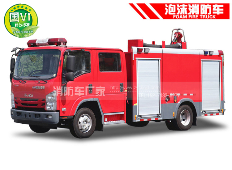 泡沫消防車同水罐消防車的結(jié)構(gòu)基本相同,不同的地方是,罐體是隔開的,一部分裝泡沫一部分裝水,另外在消防泵上安裝的有泡沫混合比例器,車頂上使用的兩用炮,可以打水也可以打泡沫。